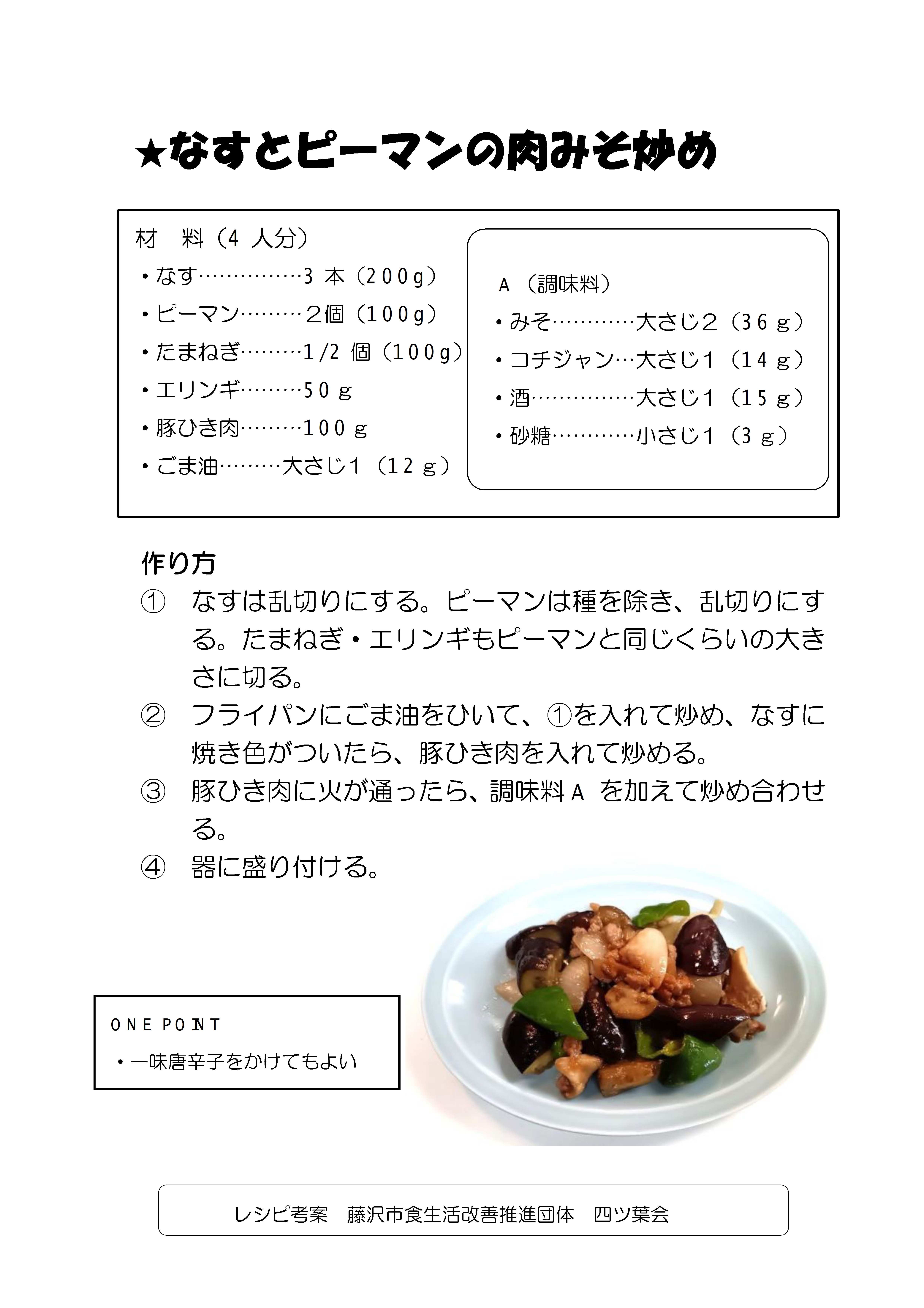9月のレシピ「なすとピーマンの肉みそ炒め」も併せて掲載いたします。
